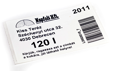 Műanyagkukára gyűjtőedényre ragasztható időjárásálló műanyag címke